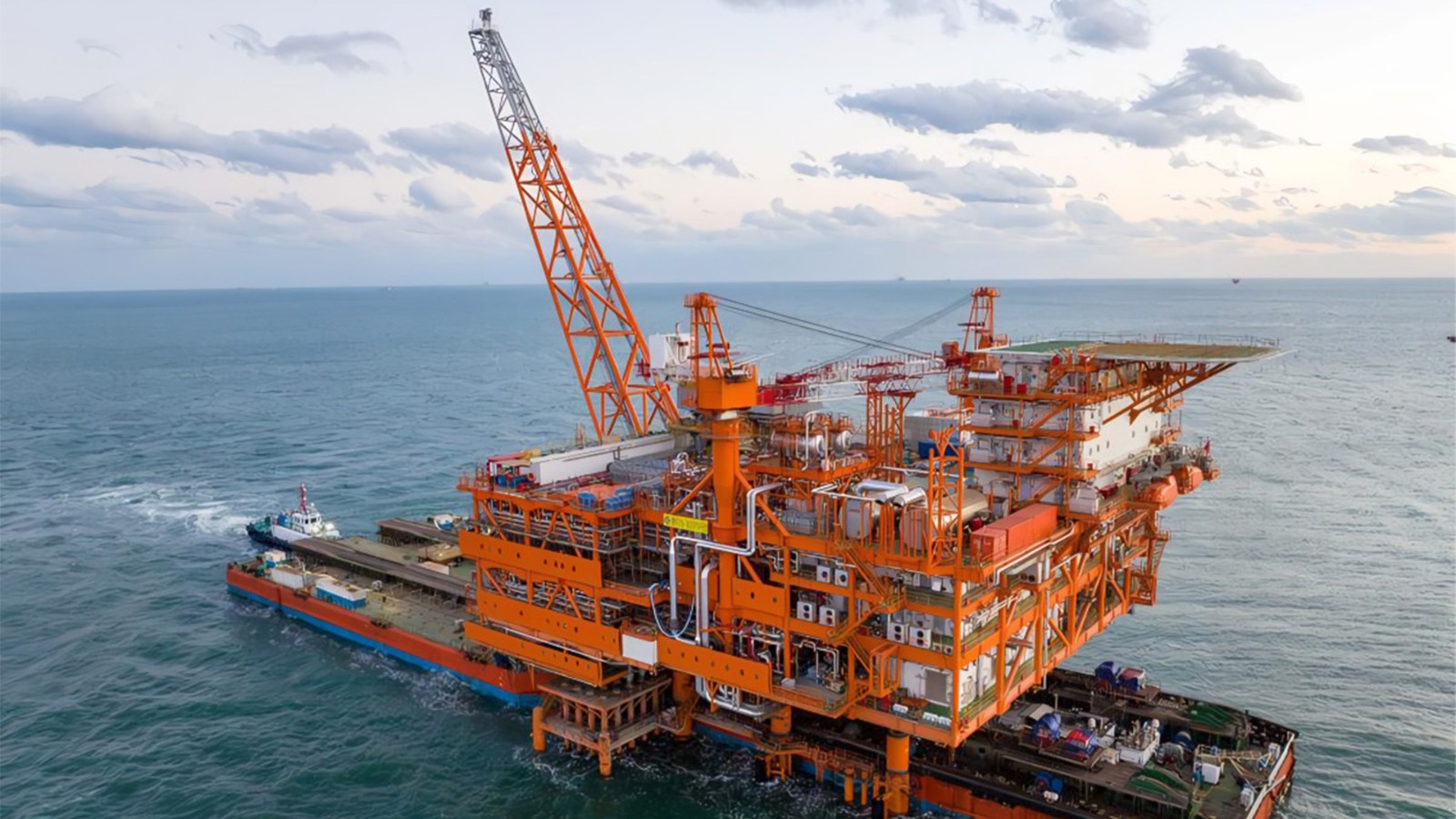 渤中26-6油田一期开发项目中心平台在渤海南部海域成功完成浮托安装,该平台重达16000余吨,采用浮托法实现精准对接。项目克服恶劣海况,通过数字化工具和精准方案,确保一次性成功安装,标志着项目建设取得重大进展。